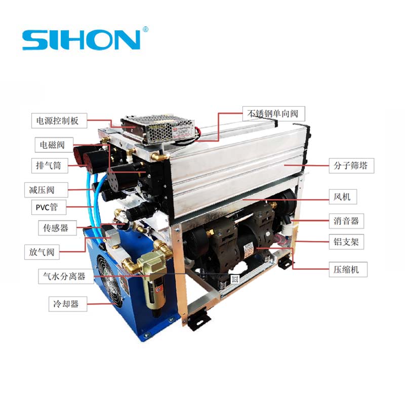 過濾器:殼牌進(jìn)氣過濾器、氧氣出口除塵過濾器和壓縮機進(jìn)氣過濾器